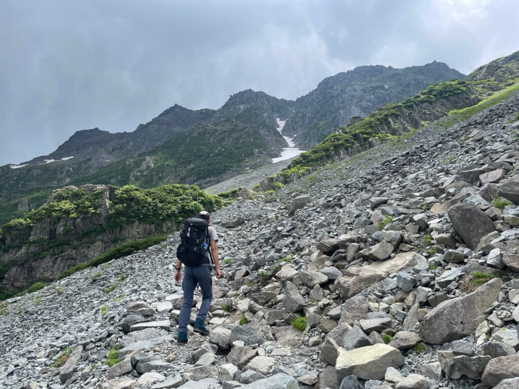 分岐から先はザレ場の下り。滑りやすいのでスリップに注意しながら慎重に。(この激下りで体幹の筋肉が悲鳴を上げてました。)