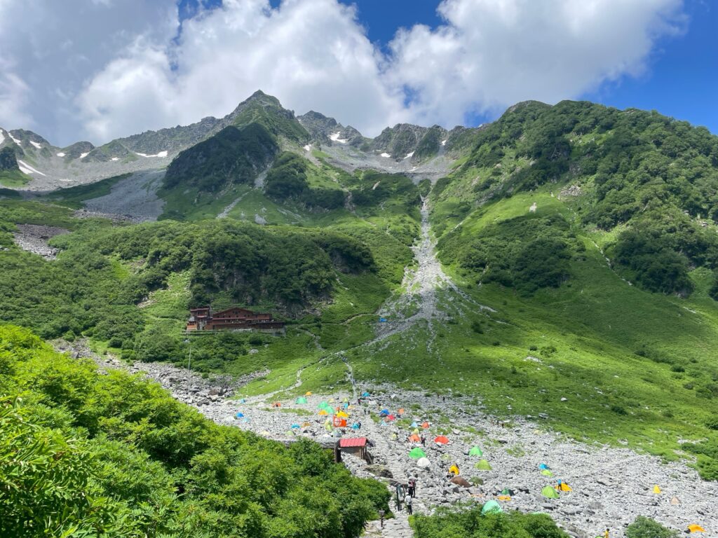 しかし横尾を過ぎ、本谷橋を越える頃には額を汗が伝い始めます。