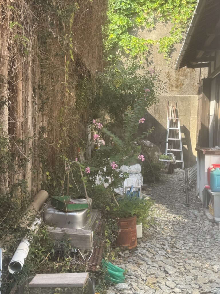お弁当を持って住宅の間の細い道を抜けて登山口へ
