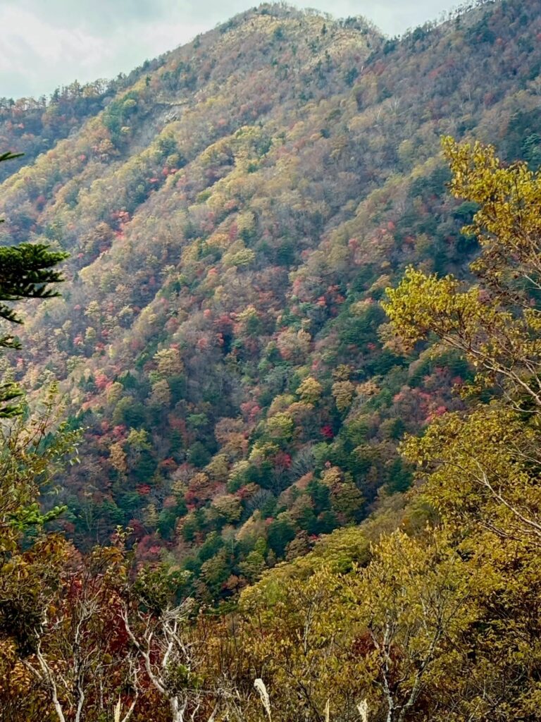 しかし錦に染まる山肌に歓声があがりなかなか前へ進まない📷