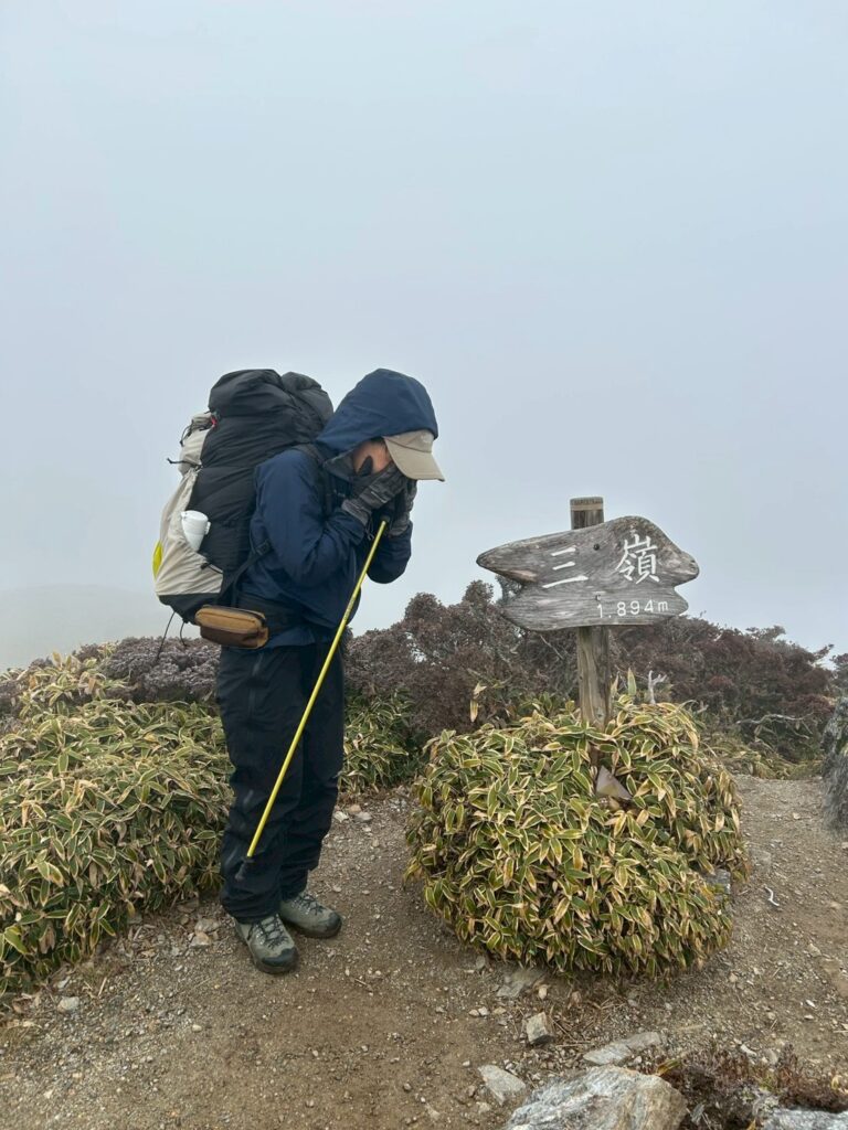登山口の温度は7度 ガスで風もある予報だったのにほんとたくさんの人が登っていました。案の定剣山山頂はガスでなんも見えません・・ガス女発揮してしまいごめんなさいね🙇♂️