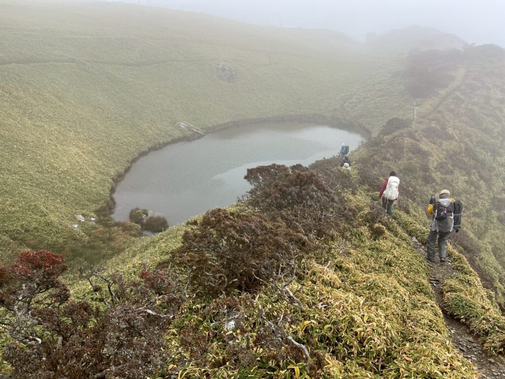 三嶺山頂ではまたしても連敗・・・お目当てのお池とヒュッテの絶景絵図はガスに呑まれている・・・