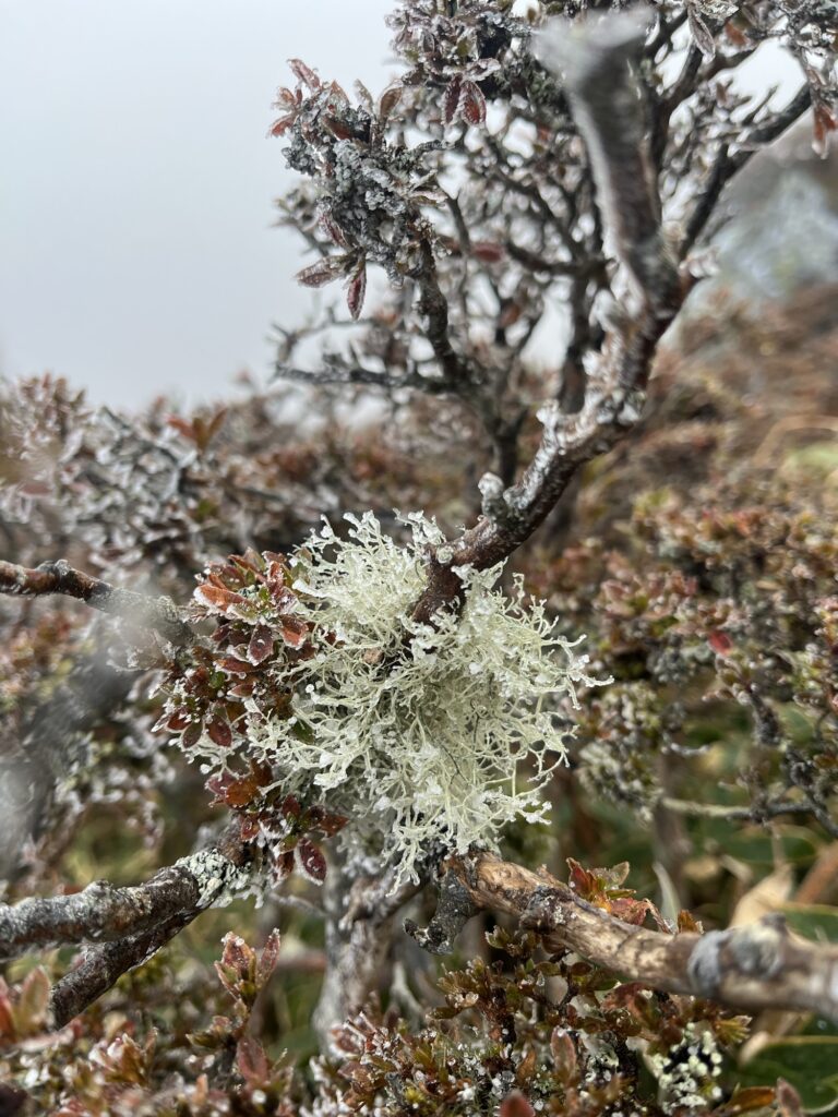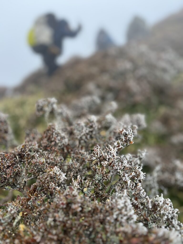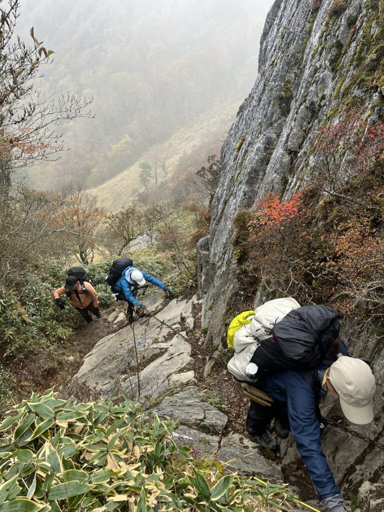 三嶺山頂直下の鎖場付近から霧氷らしきものが現れ一気に冬の訪れを感じた