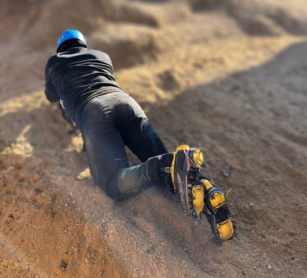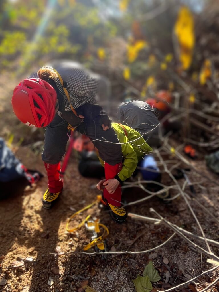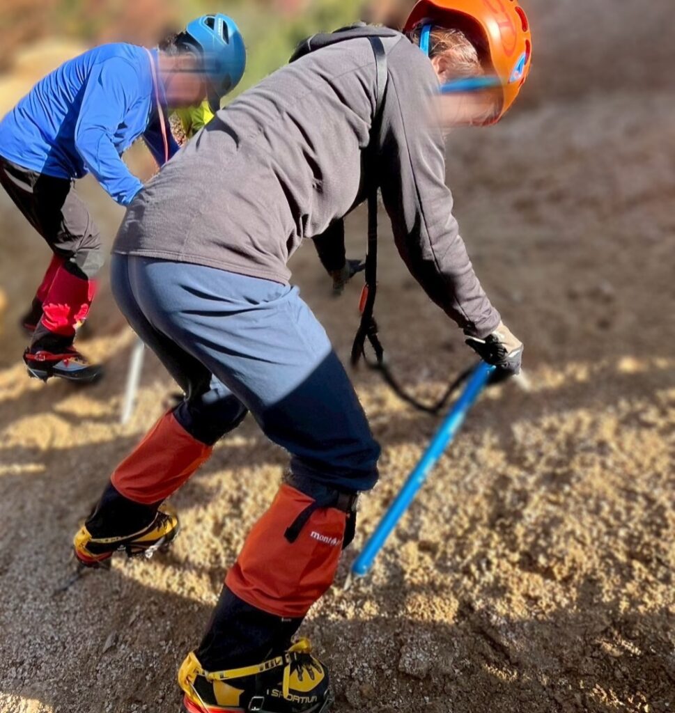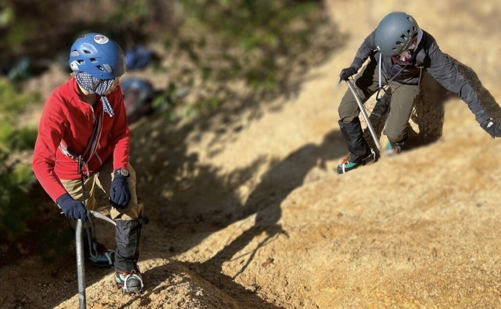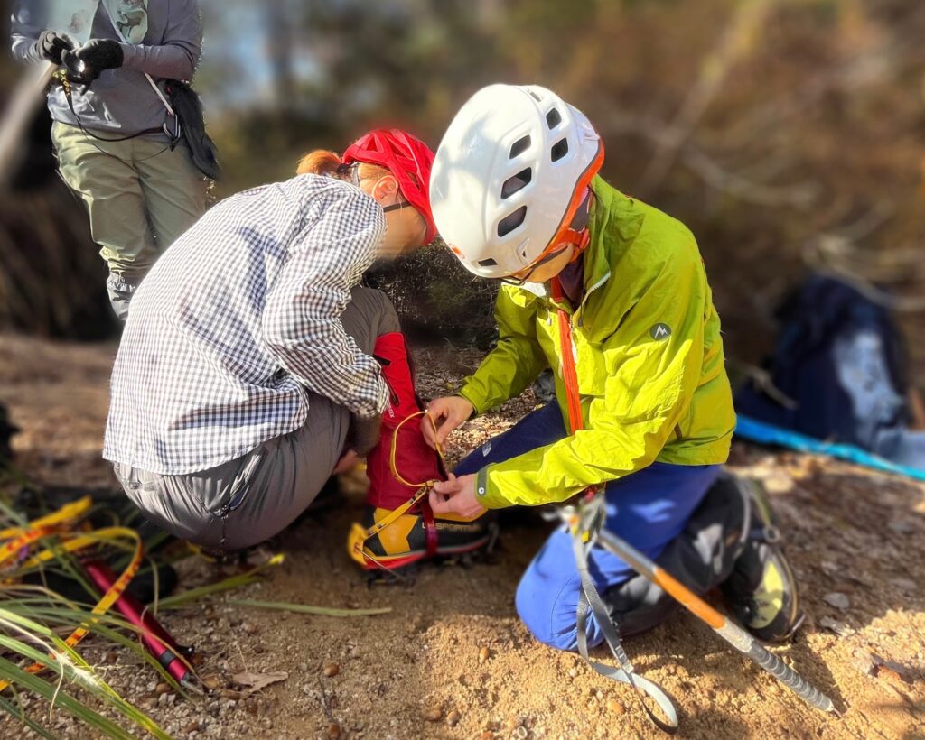 雪山教室のアイゼントレを行いました。受講生さんピカピカの冬靴に、ピカピカのアイゼン!