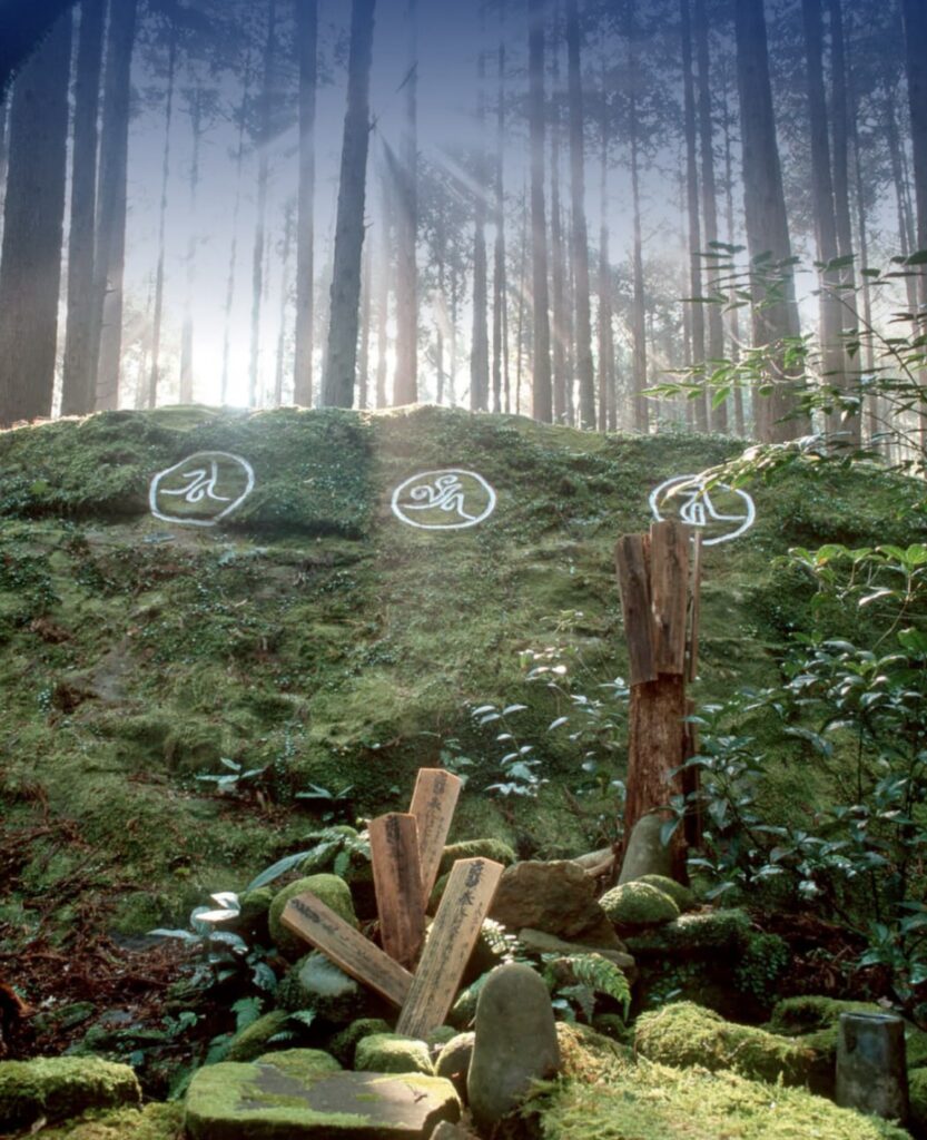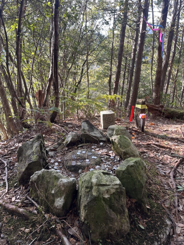 石に梵字が刻まれていて、右が阿弥陀仏(本宮大社)中央が薬師仏(新宮速玉大社)左が観音仏(那智大社)を表してるらしい。