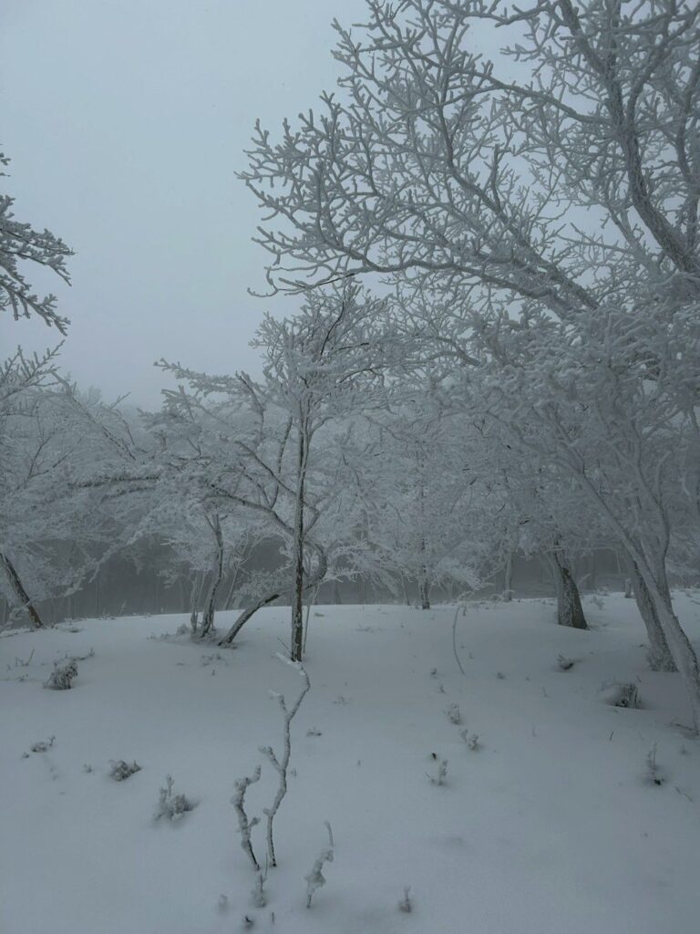私の後ろを歩いてくださったスタッフの先輩から熱心なご指導をいただきました。堂満岳の時よりもさらに「フラットフィッティング」を意識して歩くことができましたが、少しでも気を抜くとアイゼンを絡ませてしまいそうになります。一歩一歩の集中力が、雪山では命取りになることを痛感しました。