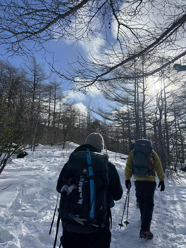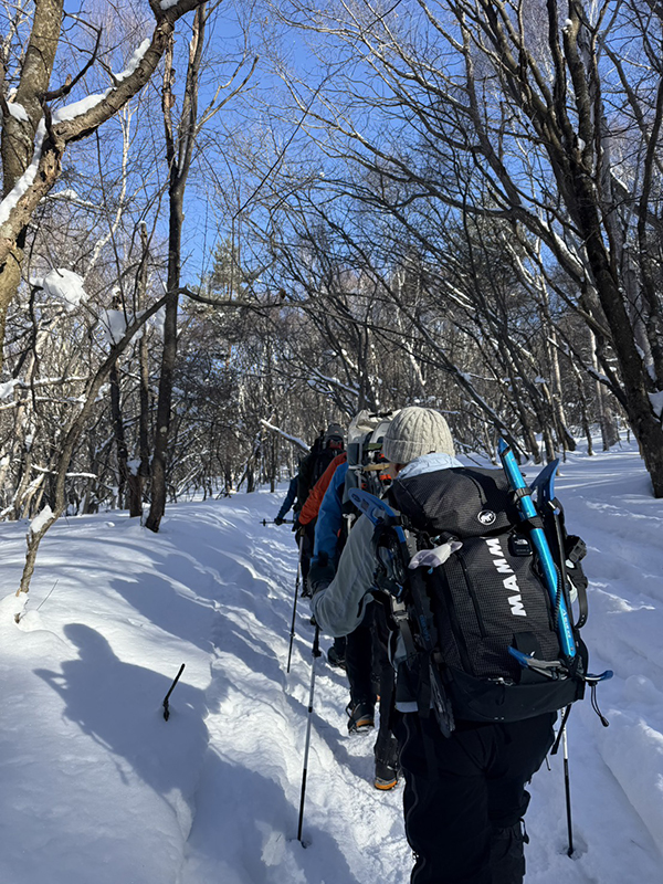 登山口からアイゼンを履き、今日もおしゃべりしながら楽しく歩きます。