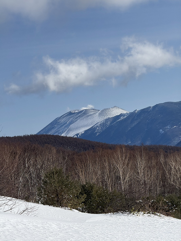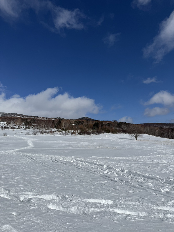 浅間山のハーフガトーショコラを横目で見ながら、大雪原を渡りきり、駐車場へ下山。