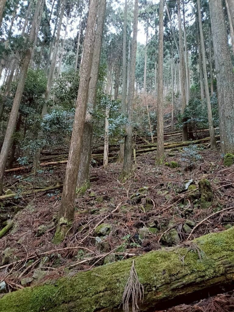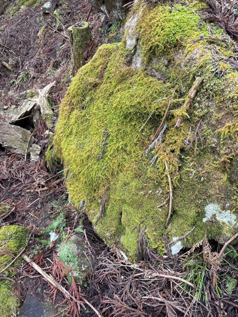 苔むした樹林帯。倒木はフカフカ。