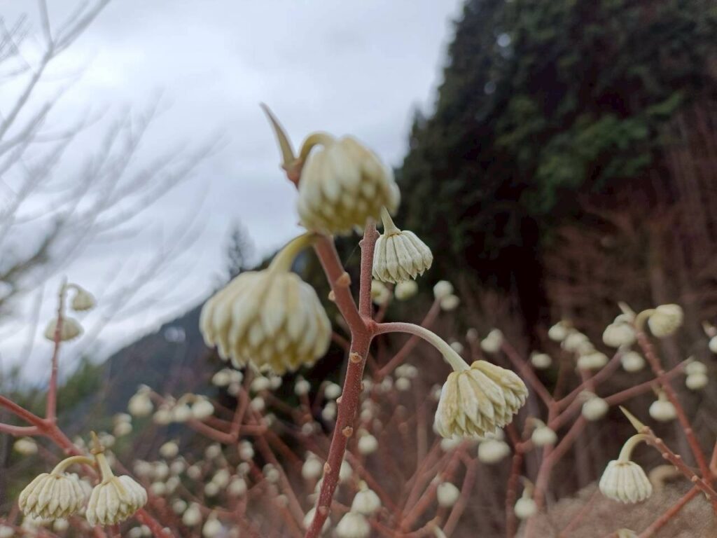 たくさんのミツマタがもうすぐ花を咲かせそう。