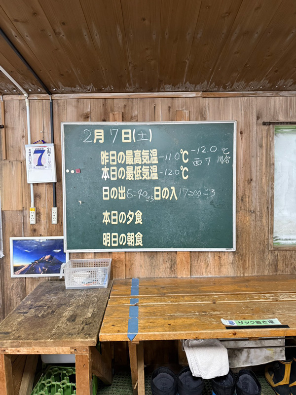 赤岳天望荘は2月11日で冬季営業が終了になるようでした。下の八ヶ岳山荘でなぜなのか聞いてみたところ、2月中旬になると気温が上がったり下がったりして食品が凍ったり溶けたりを繰り返すから一旦閉めるのだと教えてくれました。