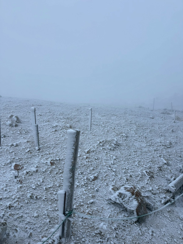 この日道路状況が最悪で運転ベテランのスタッフの方でも上まで上がってこれないほど。荷物を持ってゲートまで下って欲しいとのことでしたので荷物を背負い、ゲートへ。ゲートで乗せてもらって駐車場に到着。