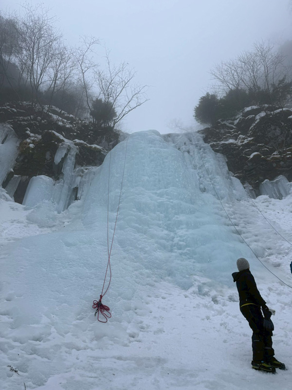 滝にはアイスクライミングを楽しむパーティーがおられ、時折氷片が落ちてきましたが
