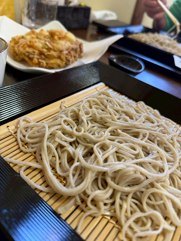 下山めしは「手打ちそば 一八」二八蕎麦とかき揚げ。蕎麦せんべいも美味しかったです。