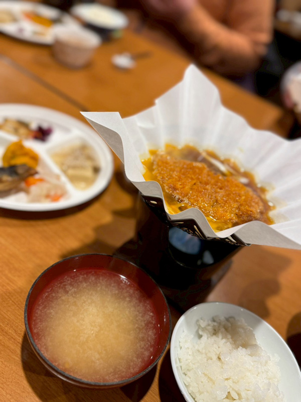 晩御飯は名物のカツ煮。美味しくいただきました。