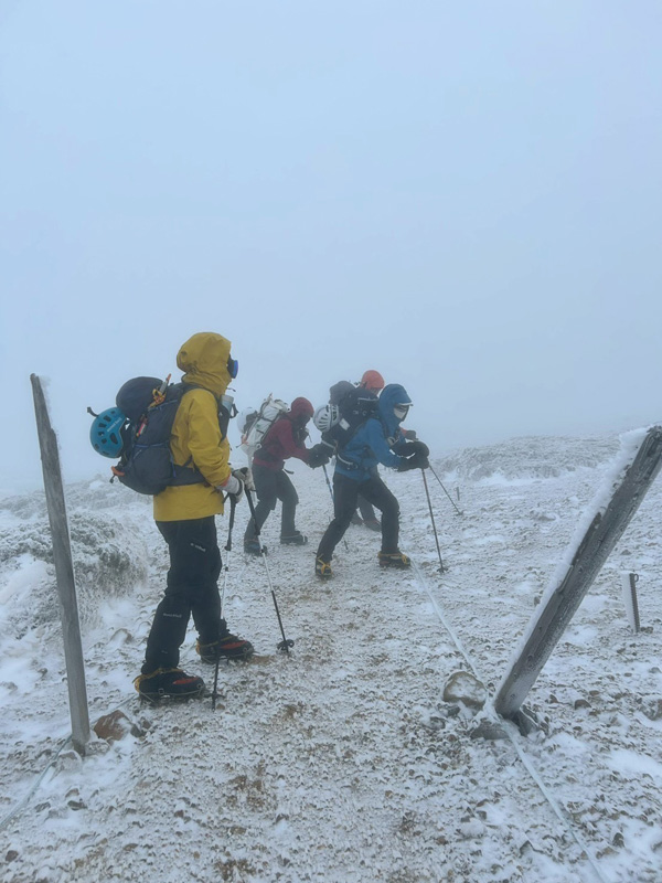 耐風姿勢を取りながら箕冠山へ。戦闘モードは20分ほどでした。