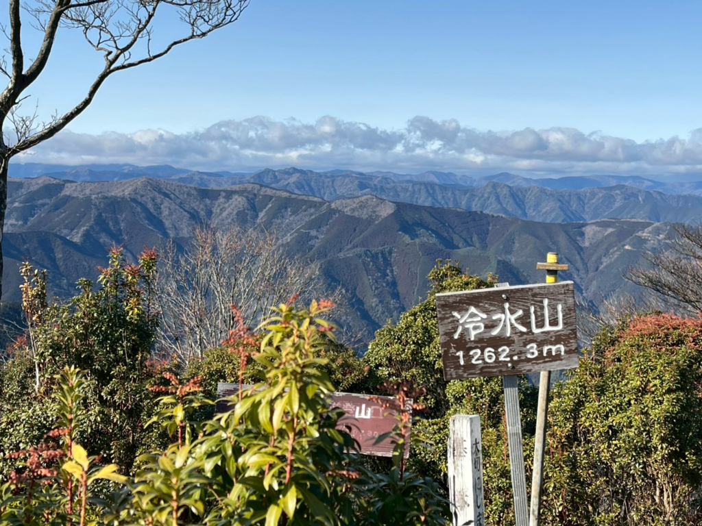 落葉樹も葉をつけておらず、歩きながら木々を透かして大峰奥駆道、高野山熊野古道、南西に海を眺望できる。