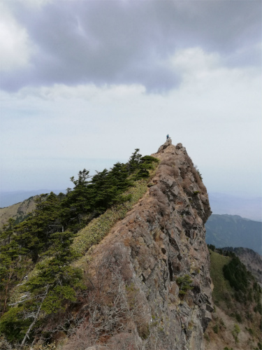 最終ピークとなる天狗岳で弥山方向から大阪ソロお姉さんとバッタリ